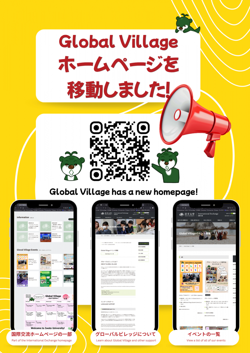 We have moved Global Village’s homepage to be a part of the Iwate University International Exchange Homepage.